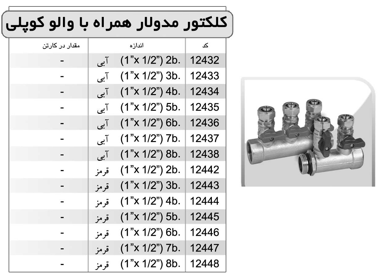 | کلکتور مدولار همراه والو کوپلی نیوپایپ قرمز 7b کد 13327 سایز “1/2 * ”1 | کد 13327 | “1/2 * ”1 |
